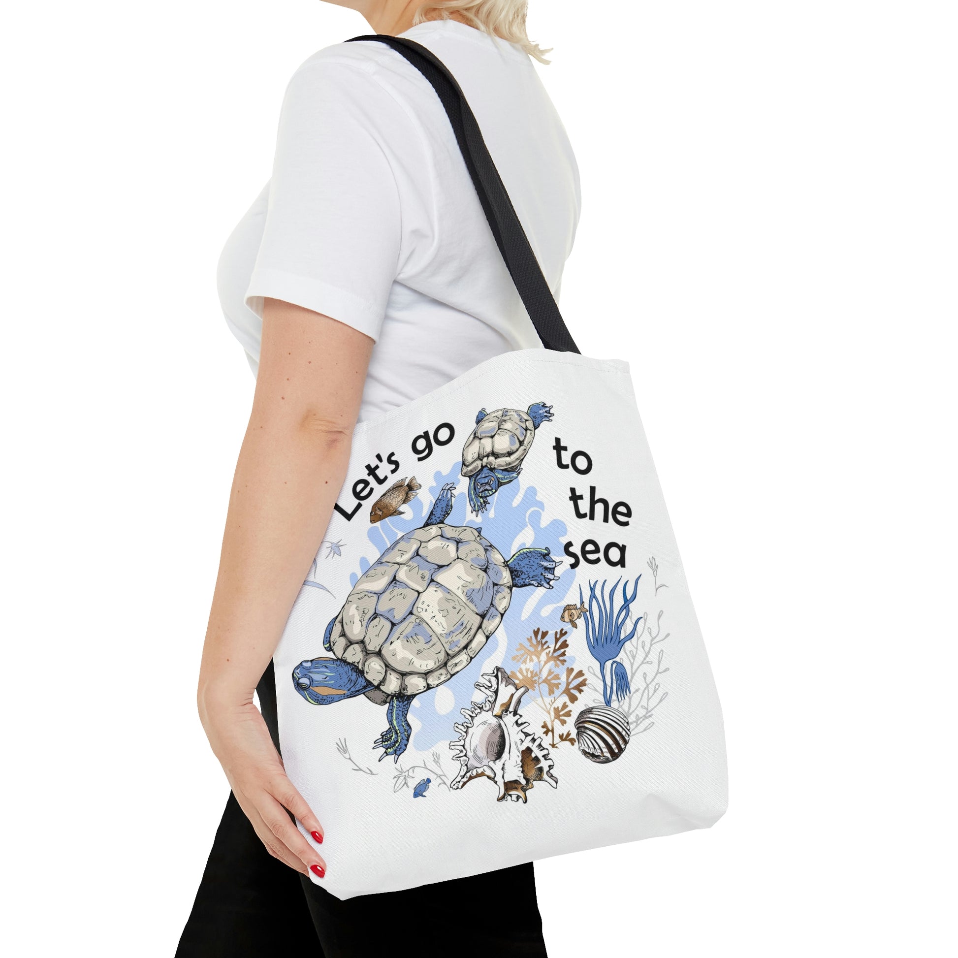 AOP Tote Bag "Two Turtle, corals, shells and fishes in the sea"